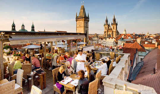 The Hotel U Prince’s Terrace is gorgeous – those orange rooftops and incredibly detailed architecture is meant to be admired, and why not from a bit of a height sprouting from the Old Town Square itself? Prague Castle and the Astronomical Clock Tower are right there for your eyes to steal. If you want to make a table reservation, you’ll have to eat here rather than just drink.