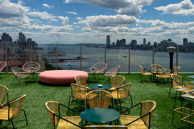 Reminiscent of some of London’s rooftop bars (Dalston) with astro turf, Le Bain rooftop bar at The Standard Hotel is a refreshing Sixties style.